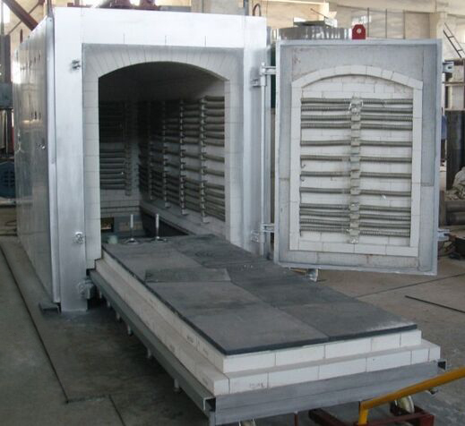 臺(tái)車退火爐供一般金屬構(gòu)件在空氣中進(jìn)行正火、退火等熱處理。